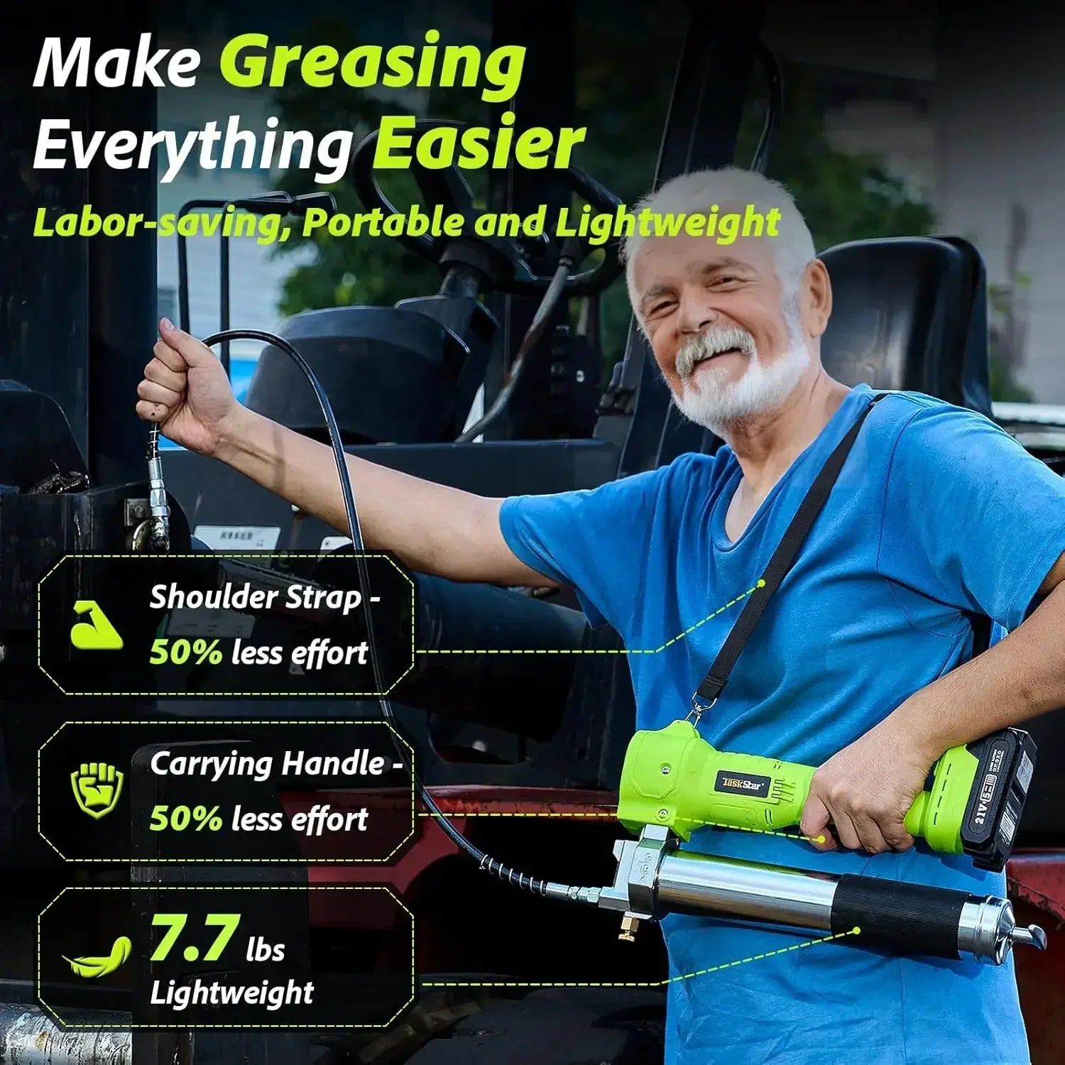 High-Pressure Performance – Fast, Consistent Greasing: Tackle tough jobs with up to 10,000 PSI of pressure and 3.0 oz/min flow rate. TaskStar Electric Grease Gun’s powerful motor and automatic pressurization system deliver smooth, fast grease every time—Winter Tip: For best performance, pre-heat the tool by running it without load for 1-2 minutes in cold conditions.