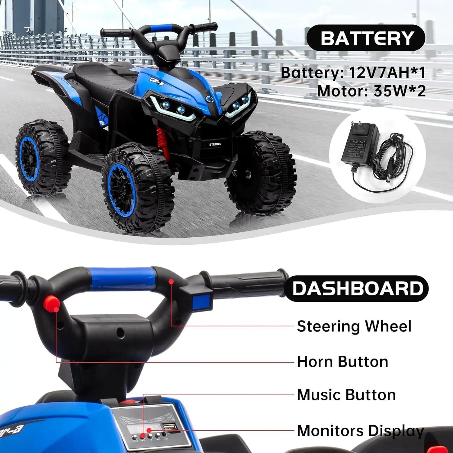 【Realistic ATV Adventure with Interactive Features】 This vibrant kids' ATV features bright LED headlights, a working horn, and fun sound effects that spark imaginative play. The detailed design mimics real all-terrain vehicles, creating an engaging riding experience for young explorers aged 3-6 years.