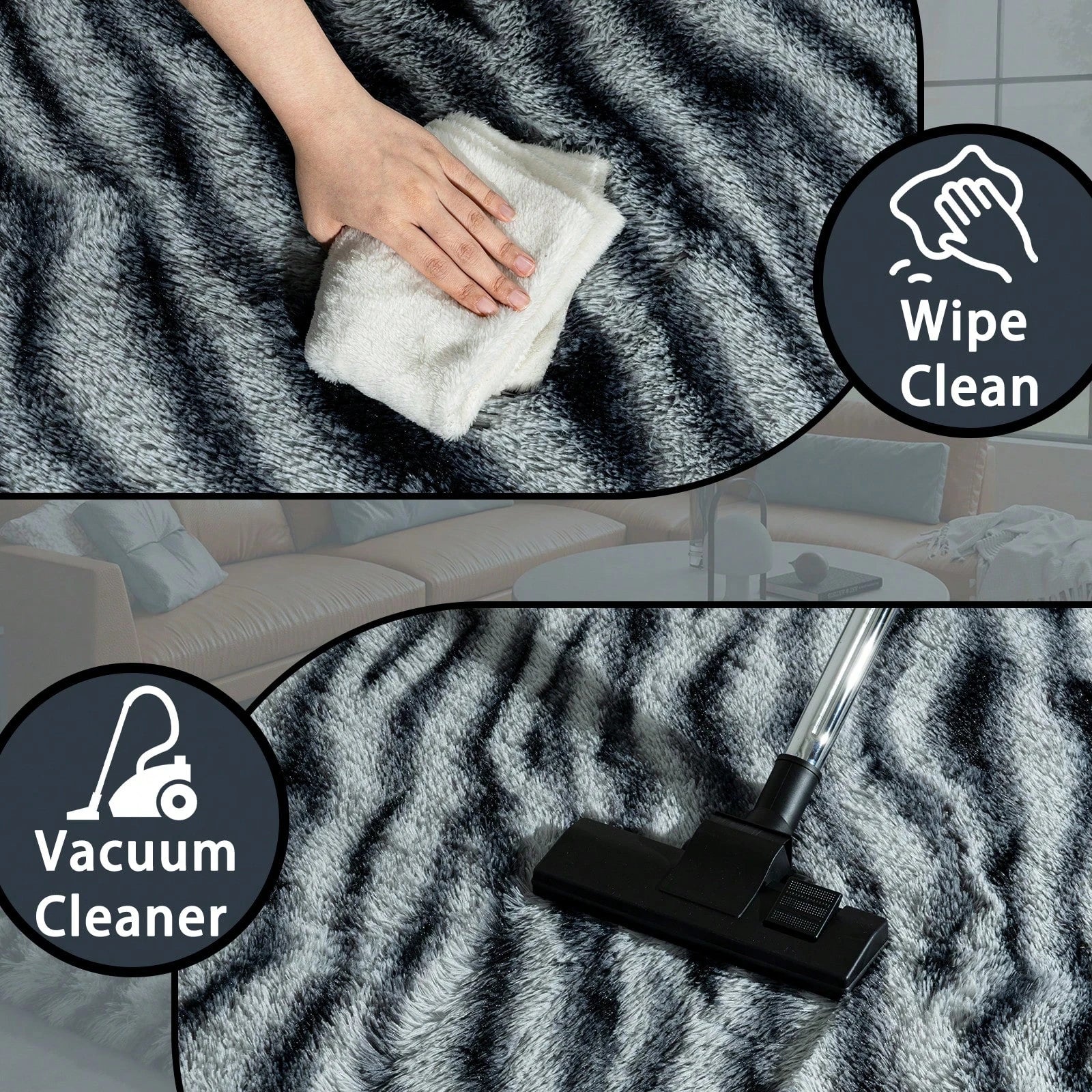 Fluffy Long Shag Zebra Print Rug, Large Area Rug, Super Soft