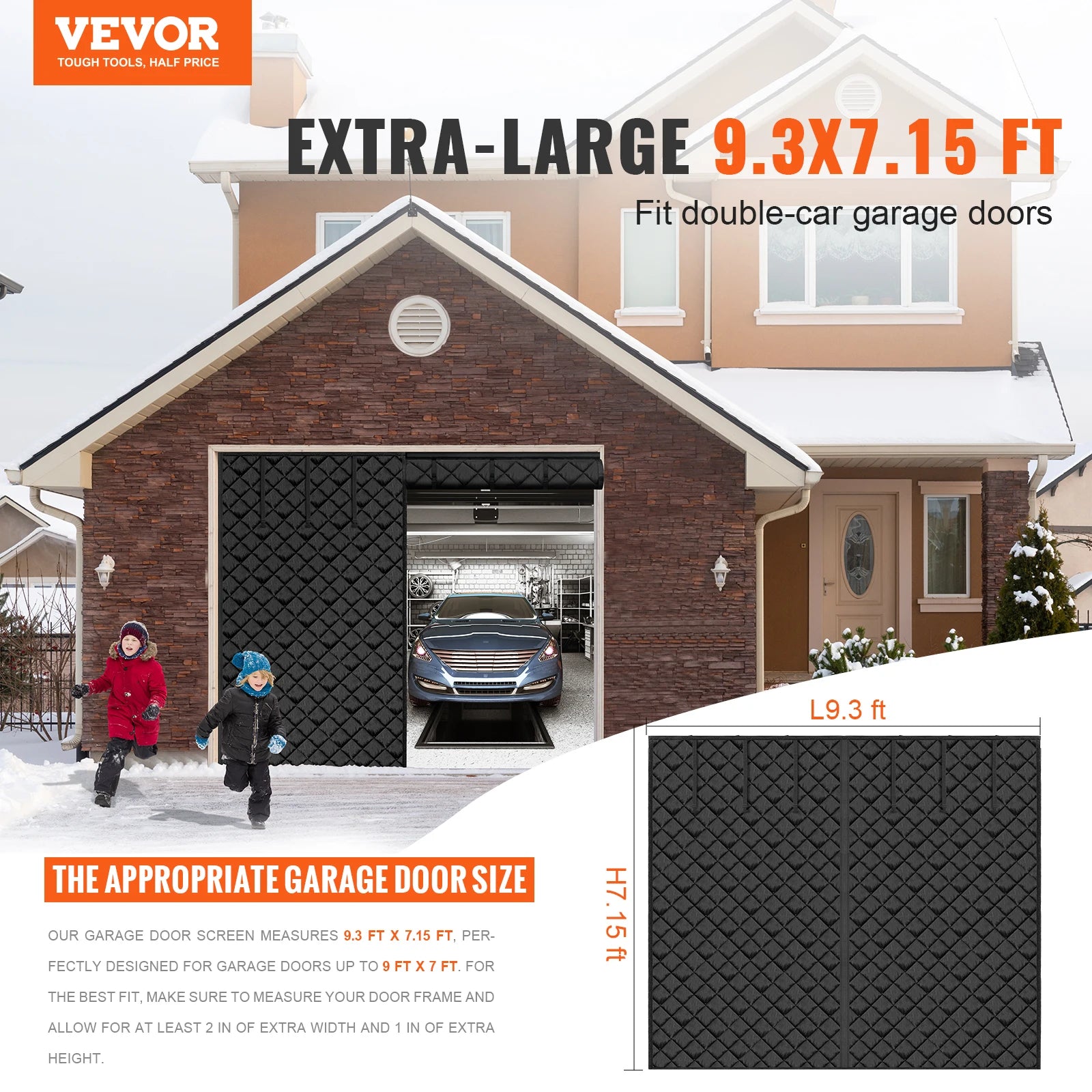 Enhance your garage with our 9.28 x 7.15 ft door screen, designed to fit larger spaces effortlessly. The magnetic closure system provides a secure and snug seal, helping to maintain a consistent indoor temperature by keeping the cold out during winter and the heat at bay in summer. Experience a more comfortable environment throughout the year!