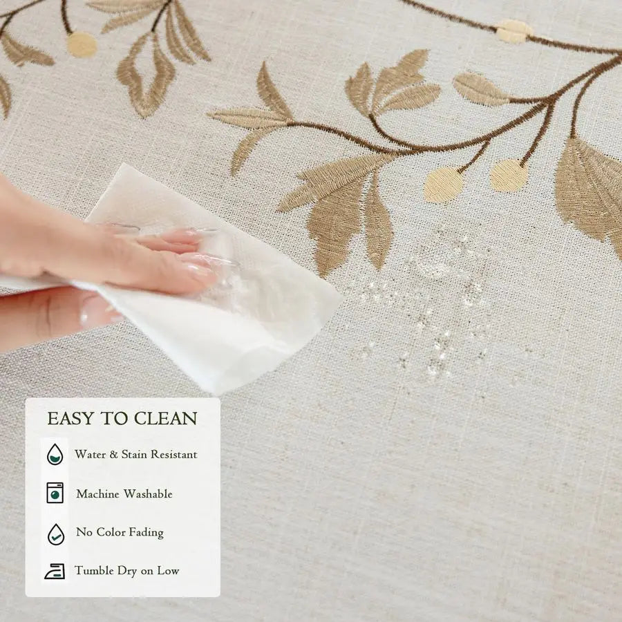 VARIOUS OCCASIONS The embroidery leaves pattern tablecloths create the perfect look for a variety of happy occasions suitable for your diningroom table, kitchen table, cafes, diners, catering, weddings, brunches or outdoor patio table.